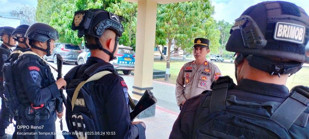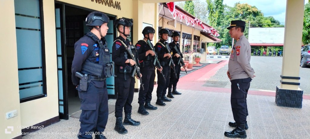 Polres Wajo menyambut kedatangan Tim Patroli Kamandahan dari Bataliyon C Pelopor Brimob Bone Polda Sulsel dimapolres Wajo dalam rangka mengantisipasi gangguan Kamtibmas diwilayahnya hukum Bataliyon C Pelopor Brimob Bone Polda Sulsel. Kamis (24/08/2023)