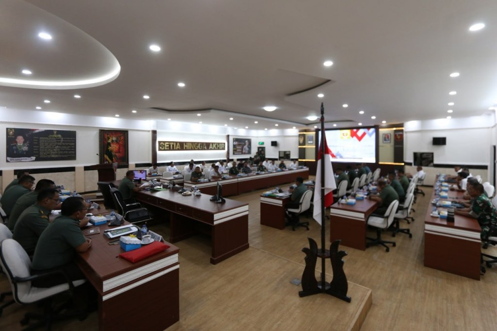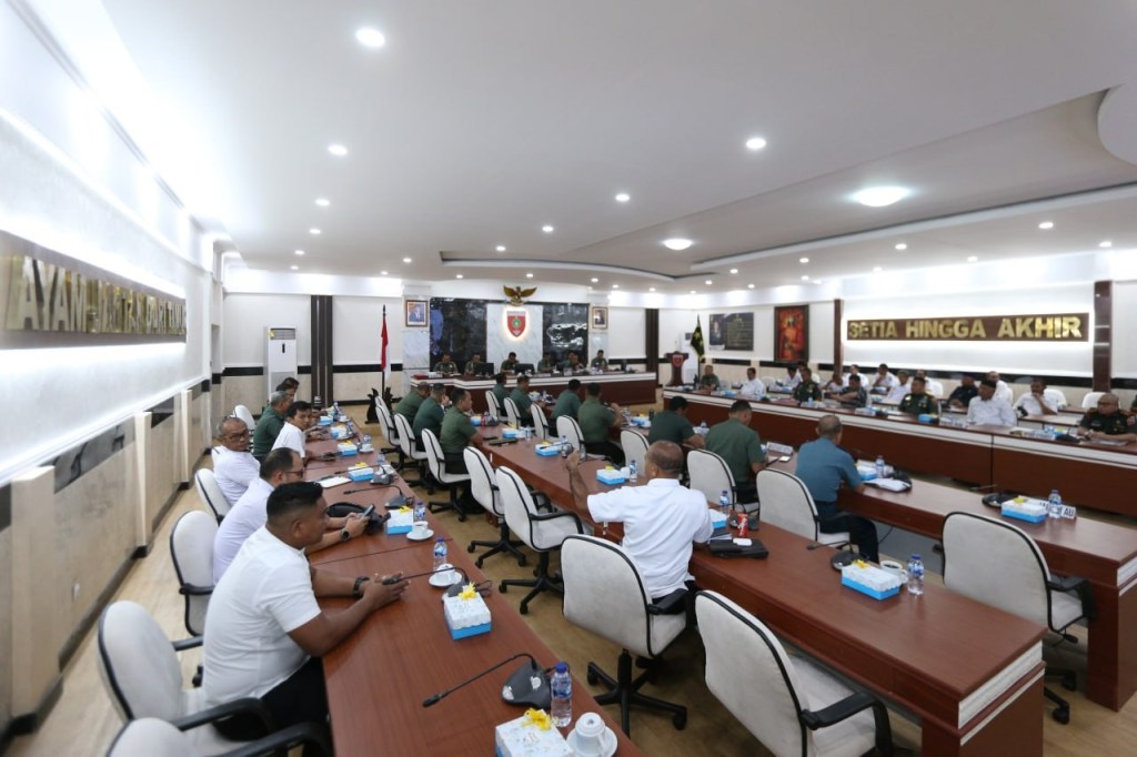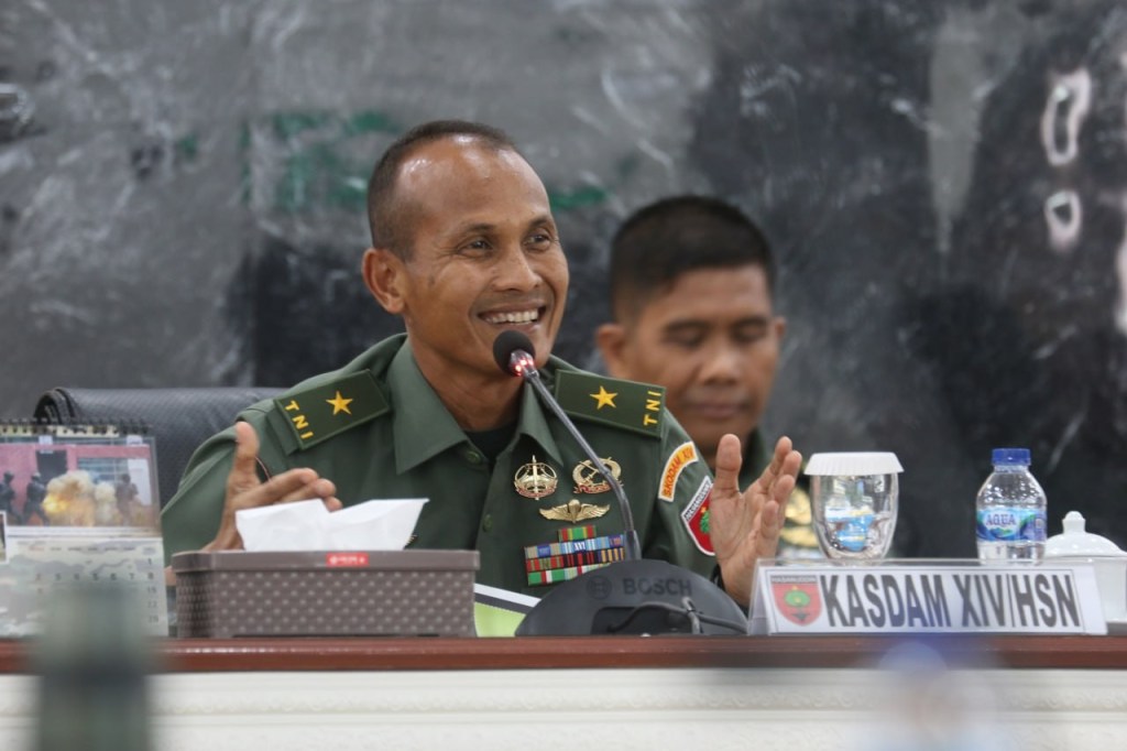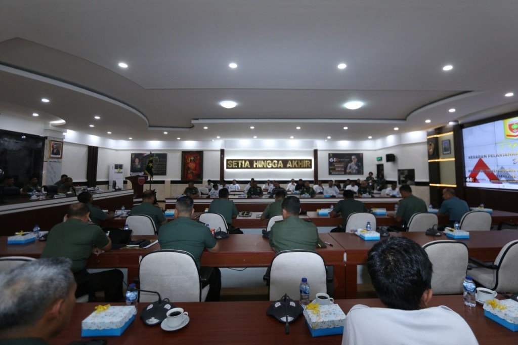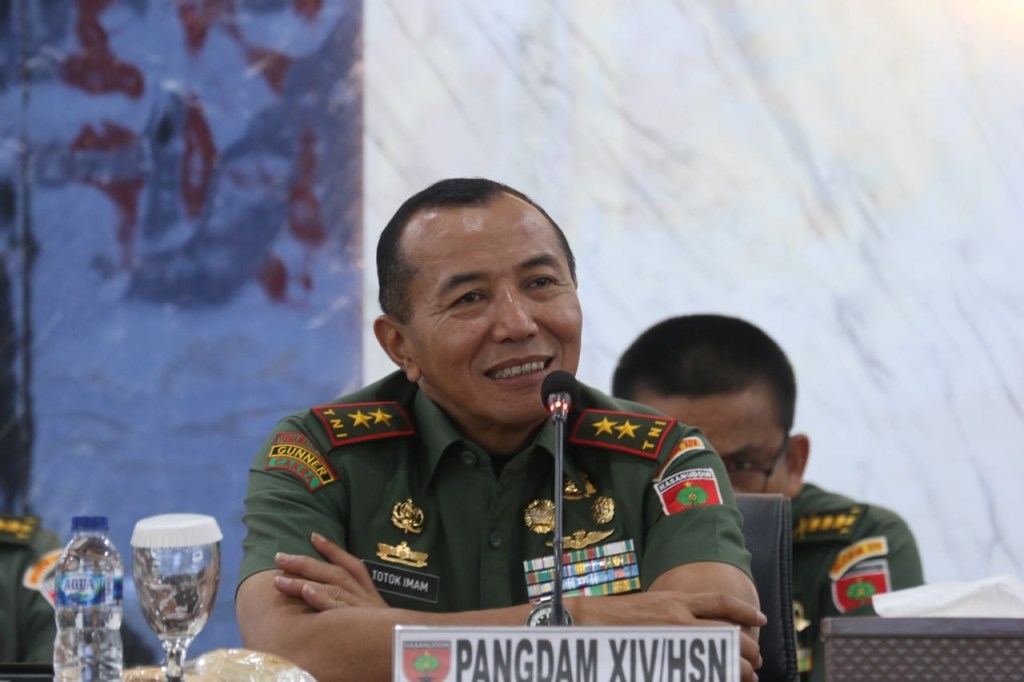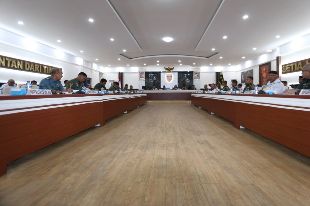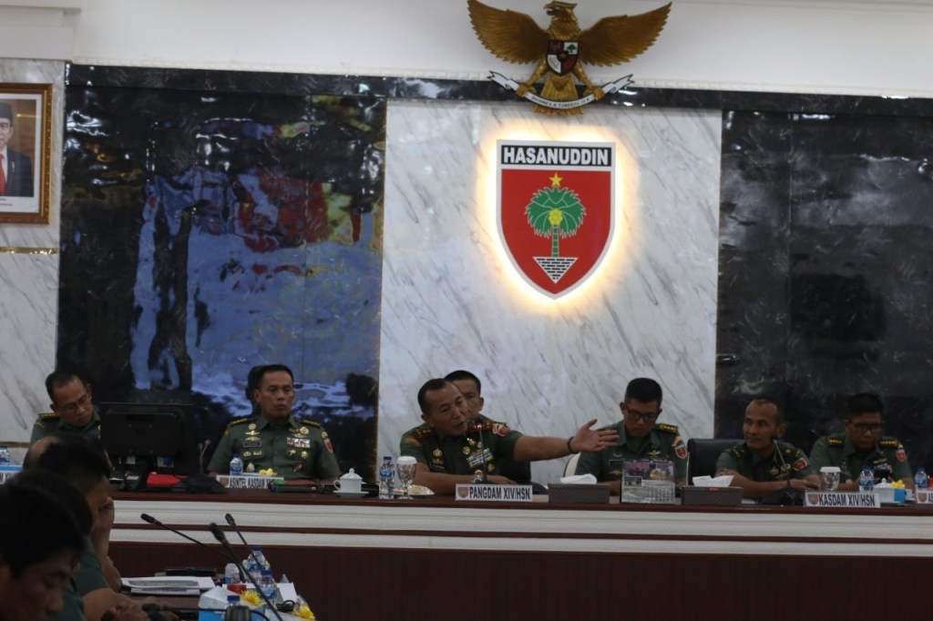 Memastikan kesiapan pelaksanaan TMMD di wilayahnya, Pangdam XIV/Hasanuddin Mayjen TNI Dr. Totok Imam Santoso, S.I.P., S.Sos., M.Tr. (Han)., menerima paparan kesiapan pelaksanaan Tentara Manunggal Membangun Desa (TMMD) Ke-118 TA. 2023 di wilayah Kodam XIV/Hasanuddin, bertempat di Ruang Bina Yudha (RBY) Makodam, Kota Makassar. Rabu (30/08/2023).