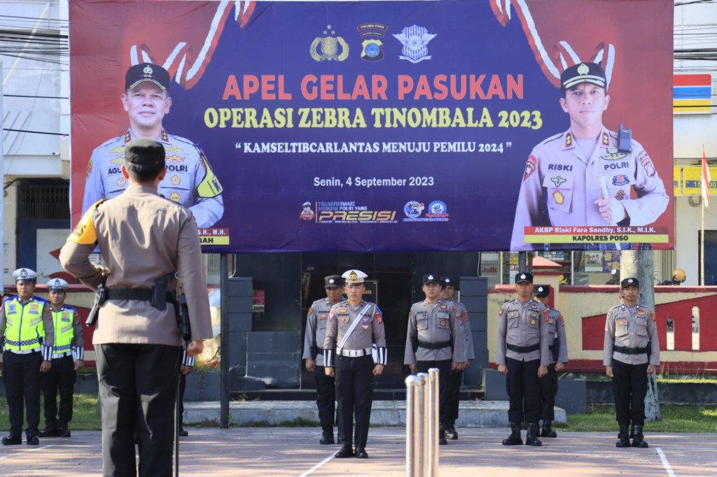 Polres poso melaksanakan apel gelar pasukan Operasi Zebra Tinombala 2023, Kegiatan ini di pimpin kapolres poso AKBP Riski Fara Sandhy, S.I.K.,M.I.K,dihadiri PJU serta unsur terkait TNI dan Dishub.