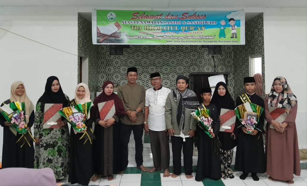 Acara penamatan ini turut dihadiri oleh pimpinan pondok, Usman, yang juga merupakan Ketua Yayasan Dirasatul Islam Al-Qur’an, serta Kepala Desa Bontomarannu, Darman Middi, dan Binmas Desa Bontomarannu, Wiwi. Kami ingin mengucapkan terima kasih yang sebesar-besarnya atas partisipasi dan dukungan semua pihak yang telah membuat acara ini menjadi sukses.