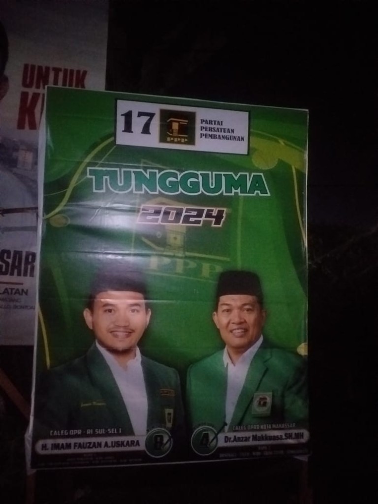 DR.Ansar Makkuasa,SH.MH Caleg PPP Dapil II Kota Makassar yang cukup intens dan optimis dengan pemasangan alat peraga berupa poster,spanduk dan baligho terpampang mulai dari jalan jalan protokol hingga ke jalan kampung dalam wilayah Kec.Bontoala,Ujung tanah,Tallo,Wajo dan Sangkarrang.