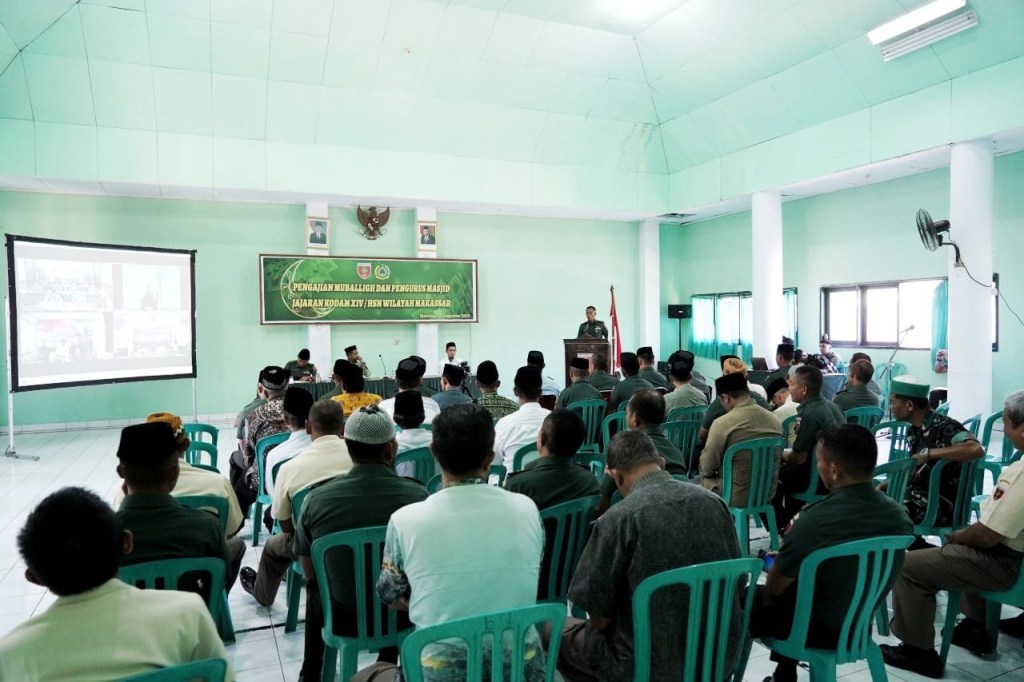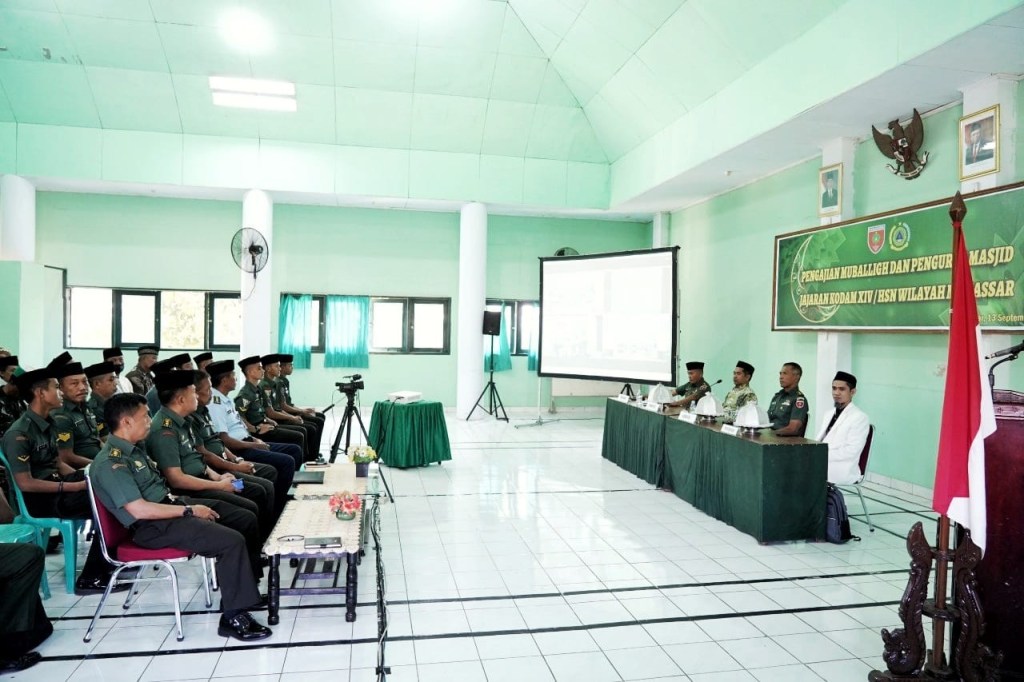 Pembinaan Mental dan Sejarah Kodam (Bintaljarahdam) XIV/Hasanuddin gelar pengajian Muballigh dan pengurus masjid secara virtual se-jajaran Kodam XIV/Hasanuddin, terpusat di Aula Bintaljarahdam XIV/Hasanuddin, Kota Makassar. Rabu (13/09/2023).