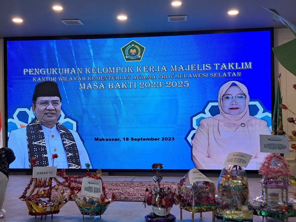 Kelompok Kerja Majelis Taklim (KKMT) Kantor Wilayah Kementerian Agama Provinsi Sulawesi Selatan masa bakti 2023-2025 terbentuk. Pembentukan ditandai pengukuhan oleh Kakanwil Kemenag Sulsel, H. Khaeroni, sekaligus peringatan Maulid Nabi Muhammad SAW 1445 H., di aula Kanwil Kemenag Sulsel, Senin, 18 September 2023.