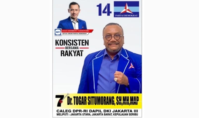 Dr. Togar Situmorang, S.H.,M.H.,MAP., Caleg DPR RI dari Partai Demokrat (PD) Dapil 3 DKI Jakarta nomor urut 7, Dapil Jakarta Utara, Jakarta Barat dan Kepulauan Seribu, tampak optimis dan begitu sangat semangat berkampanye.