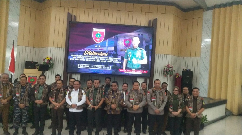 Wujudkan pemilu 2024 yg luber jurfil aman. Pangdam XIV/Hasanuddin Mayjen TNI Dr. Totok Imam Santoso, S.I.P S. Sos M. Tr (Han) berinisatif gelar apel bersama Forkopimda, KPU, BAWASLU SulSel SulBar dan SulTra ini dilaksanakan diBalai Prajurut Hasanuddin (BPH) Kota Makassar Kamis 21 september 2023.