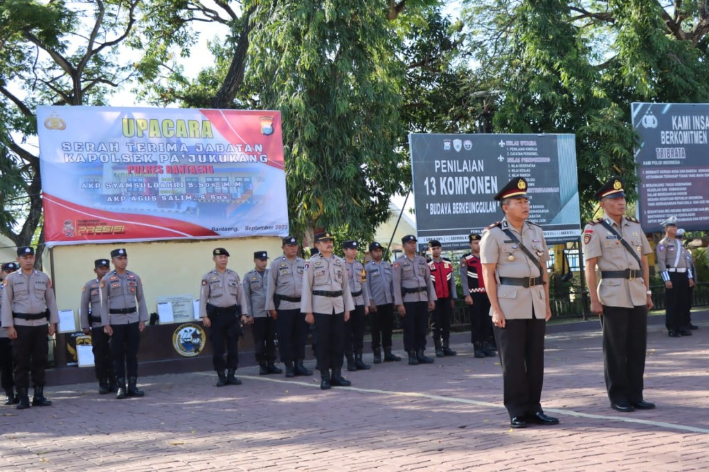 Bertempat di Halaman Polres Bantaeng dilaksanakan Upacara Serah terima Jabatan Kapolsek Pa’jukukang, Polres Bantaeng Polda Sulsel, Senin 18 September 2023.