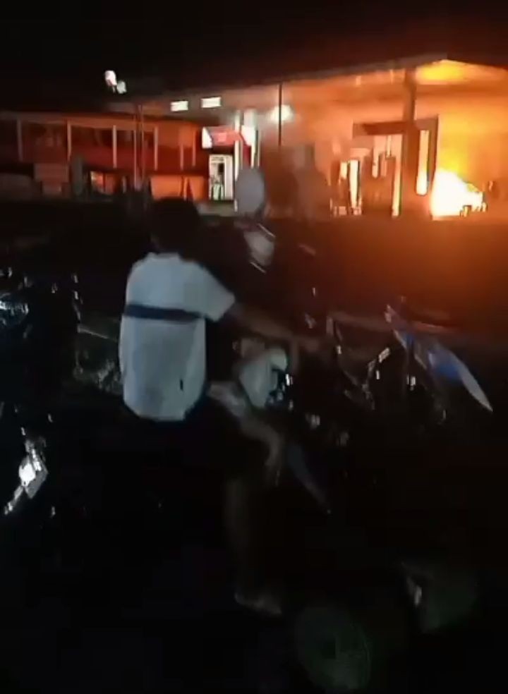 Detik-detik terjadi kebakaran di dalam areal Sentra Pengisian Bahan Bakar Minyak (SPBU) depan Pasar Pannampu, Makassar, Sabtu (23/9/2023) malam ini.