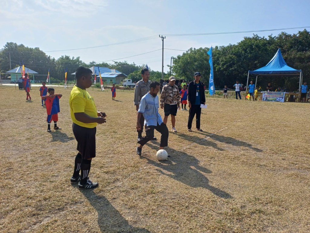 Kepala Desa Cempa Hermanto Rauf membuka karang taruna cup 1 tahun 2023 di lapangan sepak bola Desa Cempa Kecamatan Ulubongka Kab. Touna pada minggu 24/9/2023.