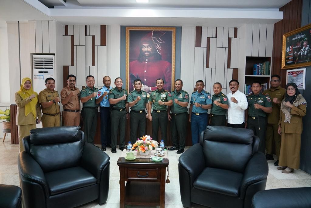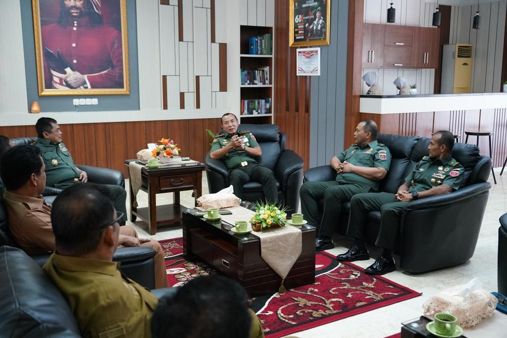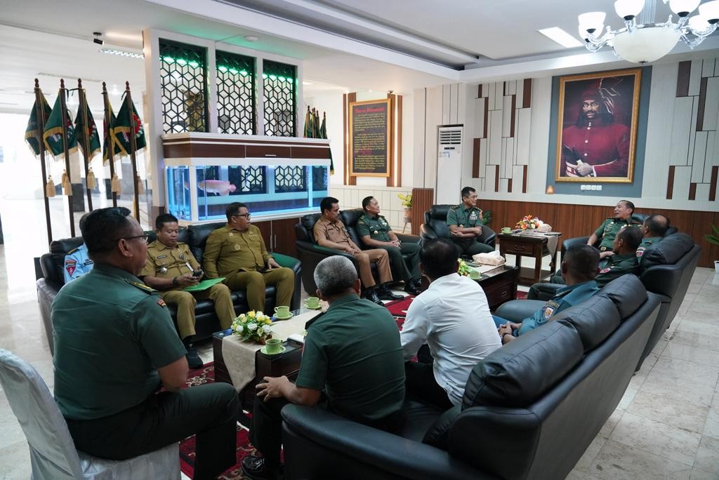 Sinergitas dalam pelaksanaan tugas, Pangdam XIV/Hasanuddin Mayjen TNI Dr. Totok Imam Santoso, S.I.P., S.Sos., M.Tr (Han), menerima Kunjungan Kerja (Kunker) Tim Staf Ahli Panglima TNI, bertempat di ruang Kehormatan Makodam, Kota Makassar. Senin (25/09/2023).