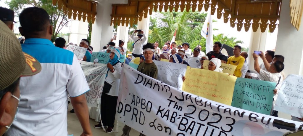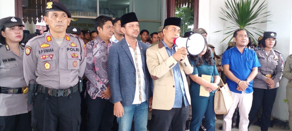 Selanjutnya massa melakukan aksi di gedung DPRD Batu Bara yang bersebelahan dengan kantor Bupati. Seratusan massa disambut Ketua DPRD Batu Bara M.Safi,i dan Ketua Komisi I Rizal Syahreza bersama anggota dewan lain.