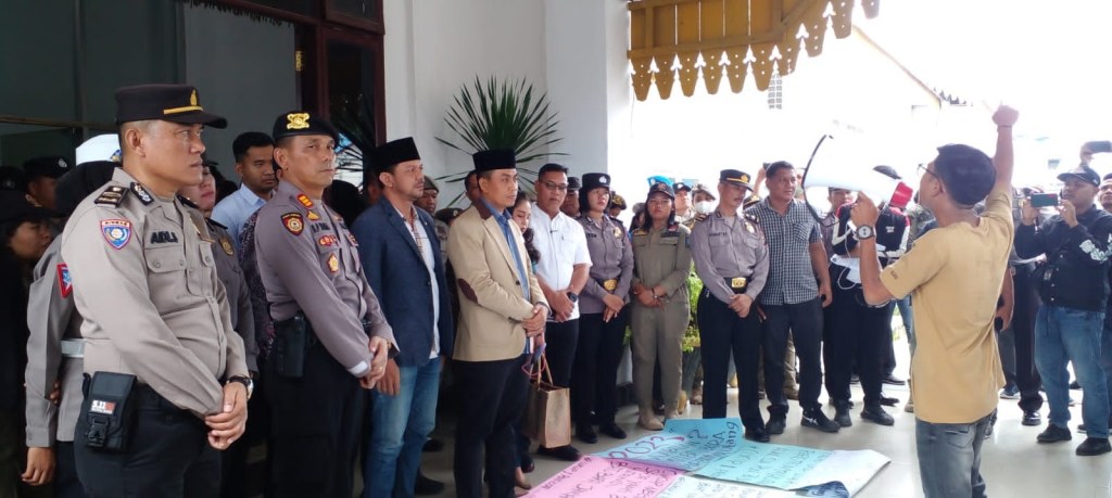Dalam pertemuan di pintu masuk gedung dewan, M Safi’i siap menindaklanjuti aspirasi TM Gemkara. Sejumlah aparat kepolisian dan Satpol PP melakukan pengawasan dengan ketat.