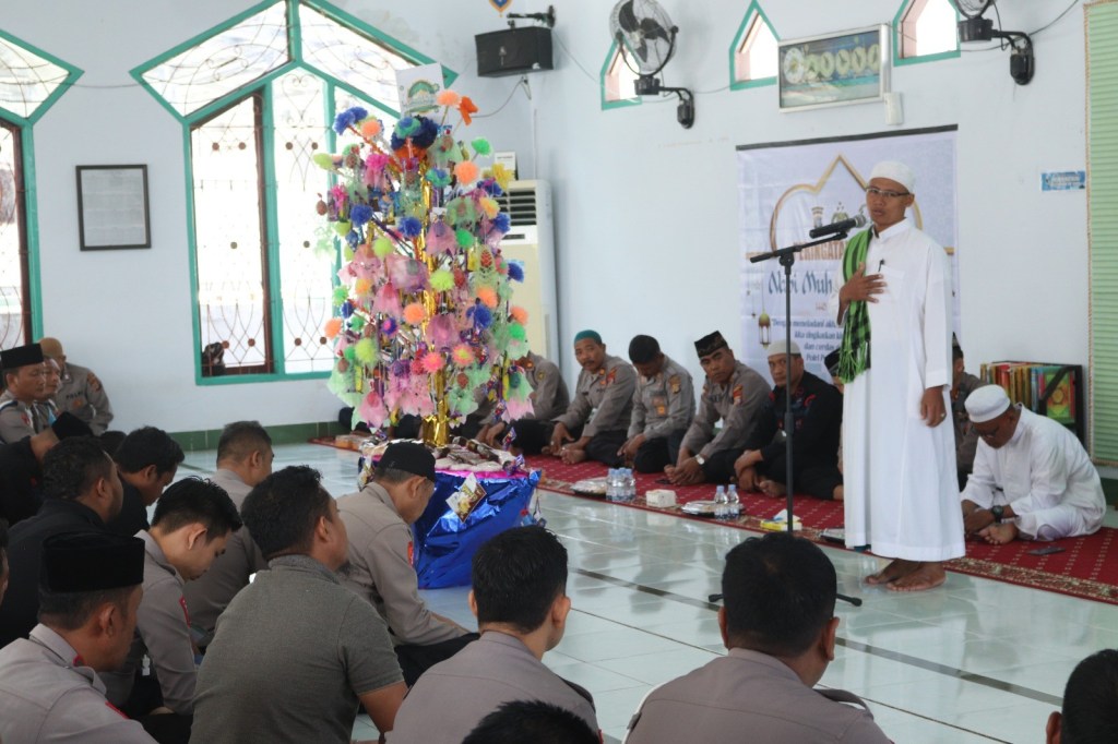 “Nabi muhammad SAW adalah figur teladan yang mesti diidolakan setiap kaum muslimin yang setiap langkahnya selalu dibawah kontrol ilahi tindakan dan ucapannya adalah mutiara yang berharga jadi landasan pembentukan akhlak dalam berbuat untuk ditaati kepribadian menjadi contoh teladan dalam segala hal,” ujar Kapolres.