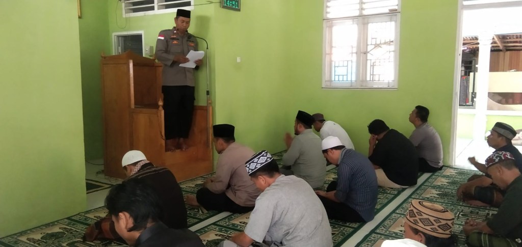 Aiptu Ridwan,SH bertindak selaku Khatib pada sholat Jumat kali ini dengan mengambil tema Peringatan maulid Nabi Muhammad S.A.W sebagai momentum mengingatkan kembali tentang peristiwa lahirnya nabi Muhammad.