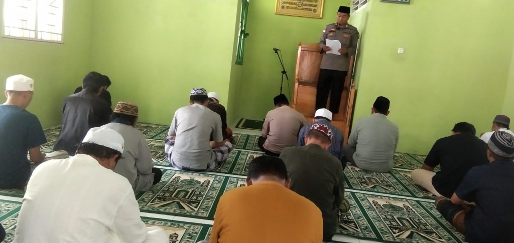News Lintas Sulawesi/Polres Poso: Dai Polri yang tergabung dalam Operasi madago Raya 2023 bertindak selaku khatib sholat Jumat di Masjid Miftahul Jannah Kelurahan Kasintuwu Kecamatan Poso Kota Utara Kabupaten Poso Provinsi Sulawesi Tengah.Jumat,29/9/2023.