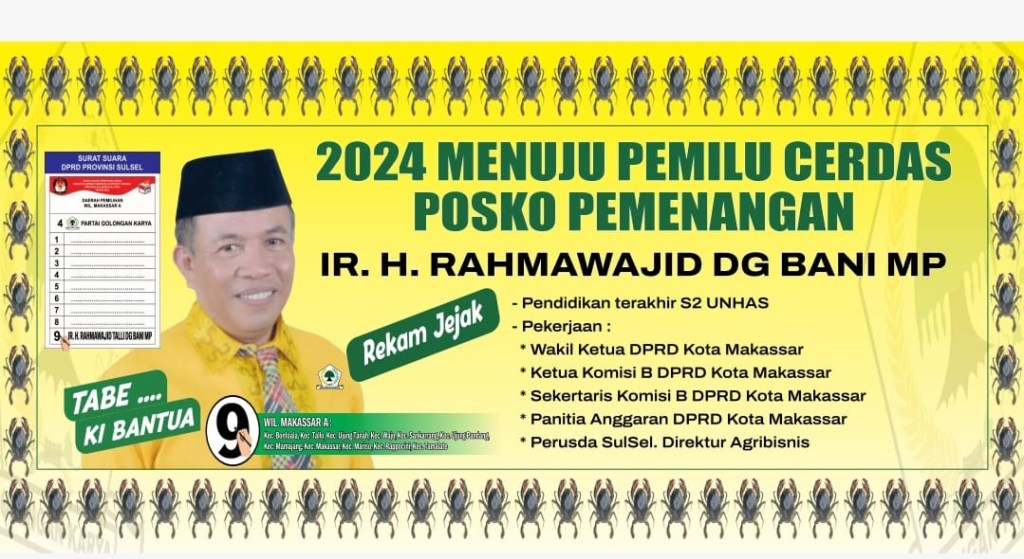 Tapi yakinlah Masyarakat sudah cerdas tidak akan laksana membeli kucing dalam karung. Rakyat dalam menggunakan hak suaranya sudah bisa memahami terhadap wakil rakyat yang diusungnya itu. Pemilih tahun 2024 sudah kita menuju pemilih cerdas. Sebagaimana tagline yang dipakai bercaleg Ir.H.Rahmawajid Talli Dg.Bani.MP.
