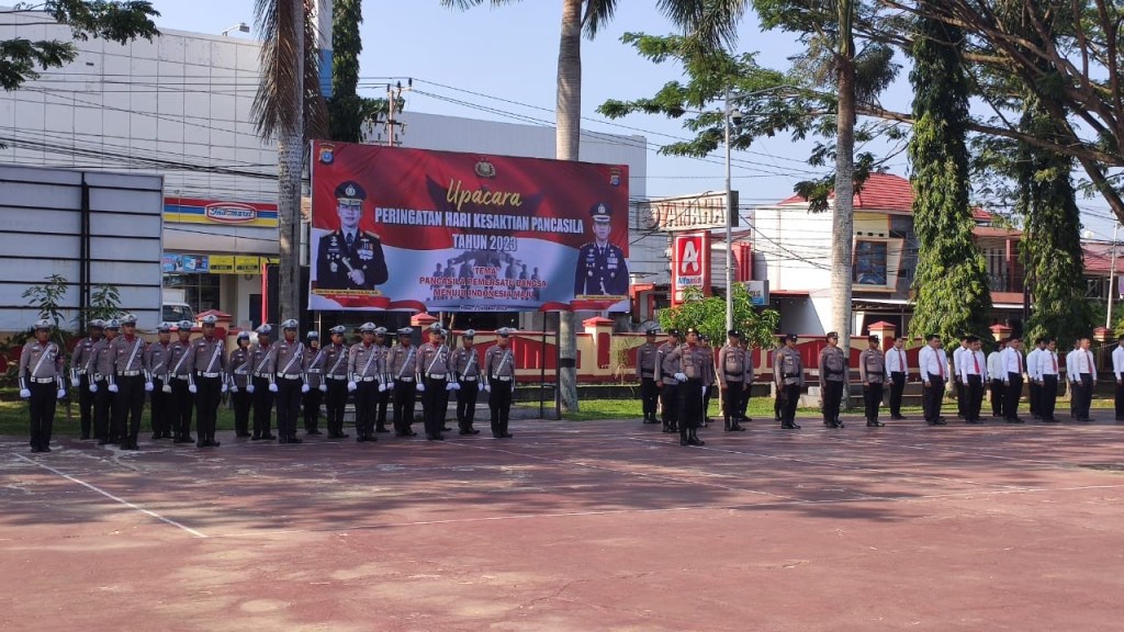 News Lintas Sulawesi/Polres Poso: Polres Posos menggelar Upacara Peringatan Hari Kesaktian Pancasila tahun 2023 di lapangan Mako Polres Poso dengan tema “Pancasila Pemersatu Bangsa Menuju Indonesia Maju”. Upacara yang menghormati nilai-nilai luhur Pancasila ini dipimpin oleh Wakil Kepala Polres Poso, Kompol Basrum Sychbutuh, SH, dan dihadiri oleh seluruh Pejabat Utama (PJU) Polres Poso serta seluruh personil Polres Poso. Minggu(01/10/2023).