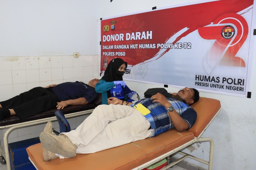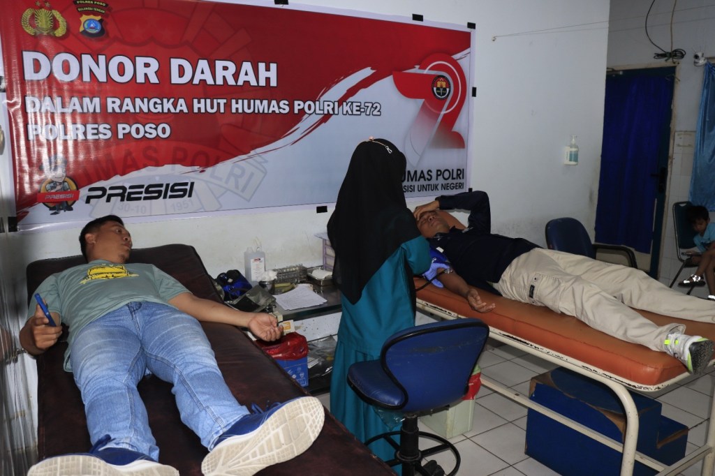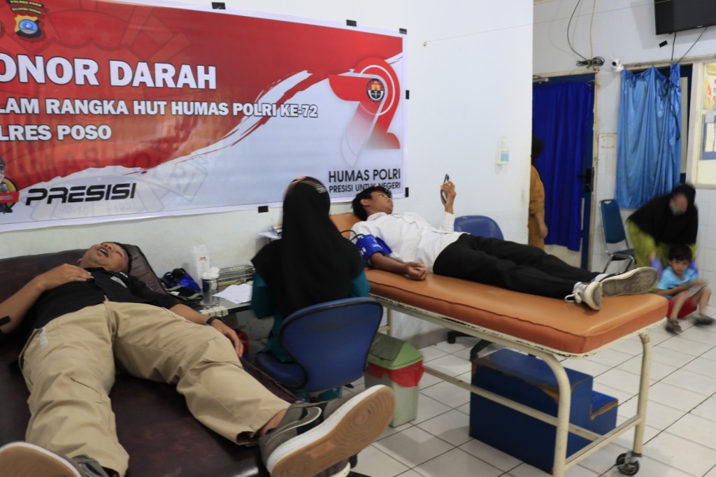 “Hari ini kami melakukan baksos donor darah di PMI Poso, melibatkan anggota Polres Poso bersama awak media,” ujarnya.