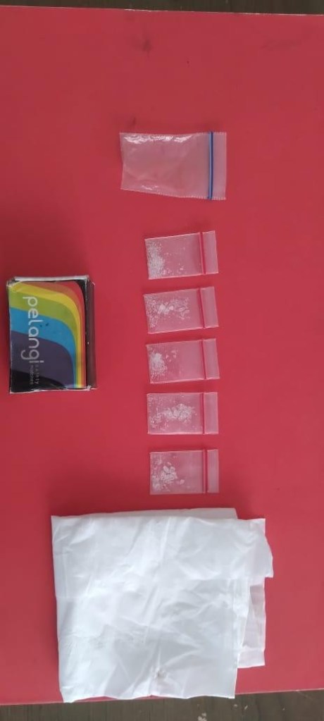 Setelah dilakukan penindakan dan penggeledahan, ditemukan barang bukti yang diduga narkotika jenis sabu. Barang bukti tersebut termasuk 5 paket sabu dengan berat bruto 1,06 gram, 1 kotak kayu tempat menyimpan sabu, 1 tisu yang digunakan untuk membungkus paketan sabu, 1 plastik cetik bening kosong, dan uang tunai sejumlah Rp. 1.000.000 yang diduga hasil penjualan sabu.