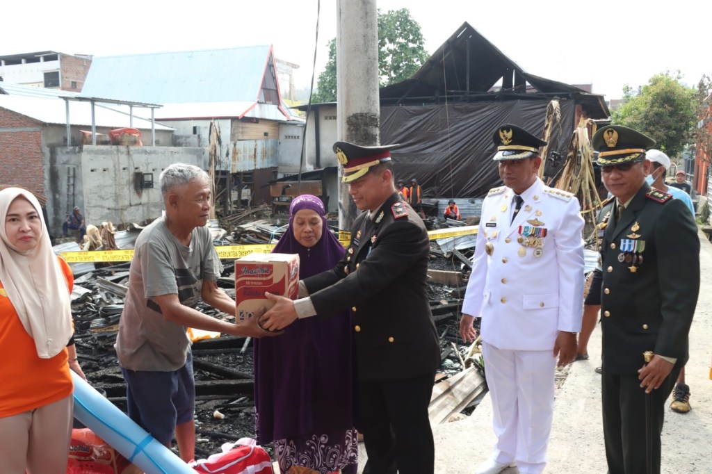 News Lintas Sulawesi/WAJO SULSEL : Polres Wajo Bersama Forkopimda kabupaten Wajo peduli kebakaran dengan memberikan bantuan sembako kepada masyarakat yang terkena musibah kebakaran di Jalan RA. Kartini Lr Hitam Kel. Lapongkoda Kec. Tempe Kab. Wajo. Rabu (04/10/2023)