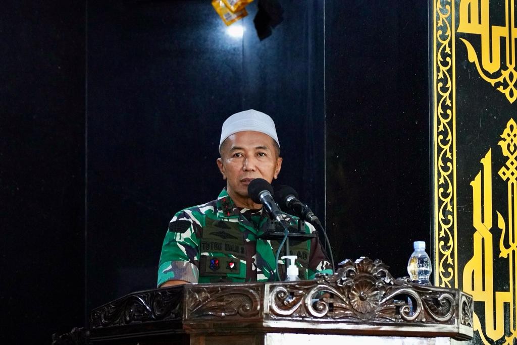 Pada kesempatan ini, Mayjen Totok dalam sambutannya mengucapkan terima kasih karena dapat bersama-sama hadir untuk mengikuti Tasyakuran dalam memperingati HUT ke-78 TNI yang bersamaan dengan peringatan Maulid Nabi Muhammad SAW 1445 H.