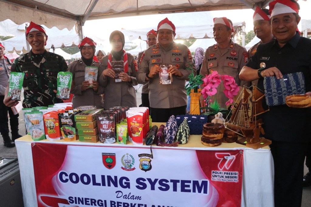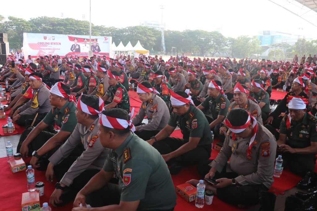 Polda Sulsel menggelar Cooling System Sipakatau Mabbulo Sibatang dengan tiga Pilar dalam rangka pengamanan Pemilu serentak 2024 Polda Sulsel pada Rabu, 11 Oktober 2023 di Lapangan Karebosi Makassar.