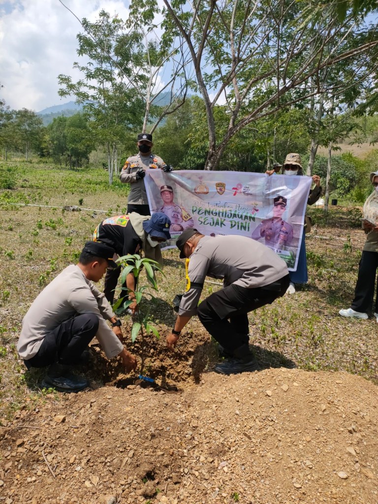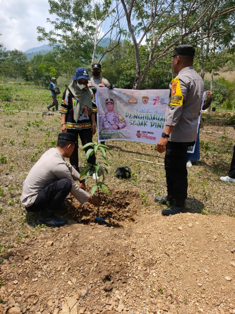 Kapolsek Ipda Ismail SH beserta jajaran Kepolosian Sektor Marawola bersama Delianti, juga beserta tim Dinas BPP Kecamatan Marawola canangkan prorgram yang bertemakan “Polri lestarikan negeri Penghijauan sejak dini yang di endus Kepolisian RI terkait SDM Unggul Presesi, lakukan serangkaian penanaman 30 pohon dengan berbagai jenis tanaman produktif