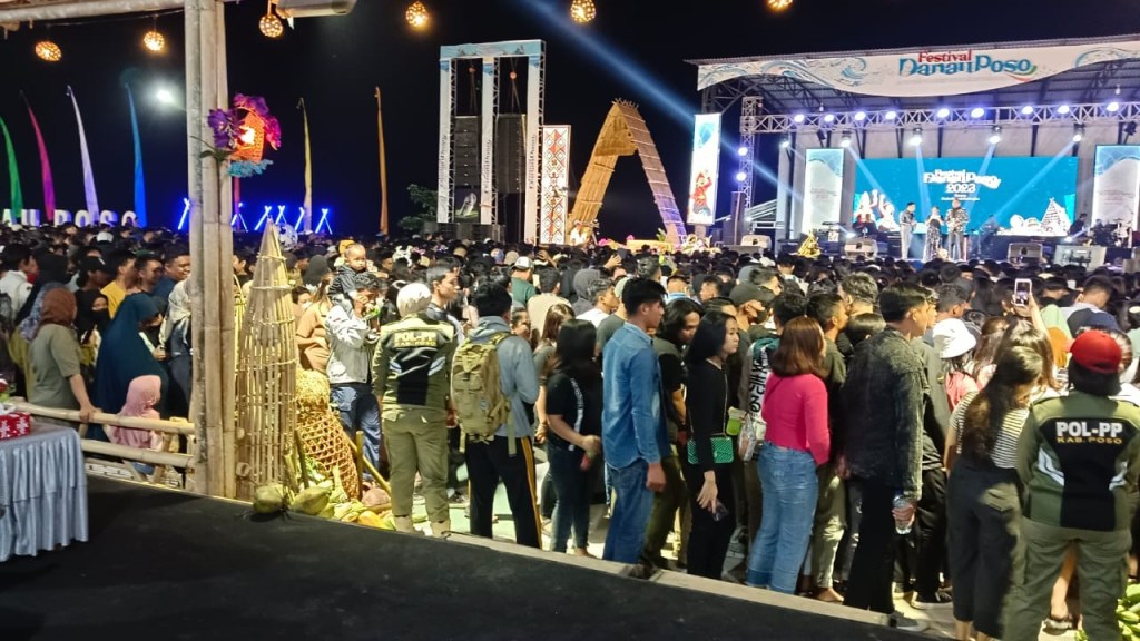 News Lintas Sulawes/Poso : Antusias warga masyarakat memadati anjungan Festival Danau Poso (FDP) Tahun 2023 di Kelurahan Pamona Kecamatan Pamona Puselemba Kabupaten Poso Provinsi Sulawesi Tengah.Jumat,13/10/23.