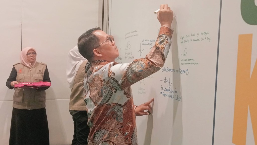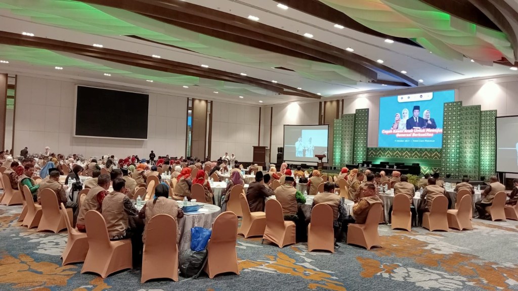 News Lintas Sulawesi/Makassar, (Humas Sulsel) : Sejumlah Pejabat di Lingkup Kanwil Kemenag Sulsel seperti Kepala Bidang Ururusan Agama Islam (Urais) dan Kepala Bidang Penerangan Agama Islam (Penais) dan Kakankemenag Kab./Kota se Sulawesi Selatan tanda tangani petisi komitmen cegah kawin anak untuk mewujudkan generasi berkualitas oleh Direktorat Jenderal (Ditjen) Bimbingan Masyarakat (Bimas) Islam di Phinisi Ballroom Hotel Claro, Rabu (11/10/2023).