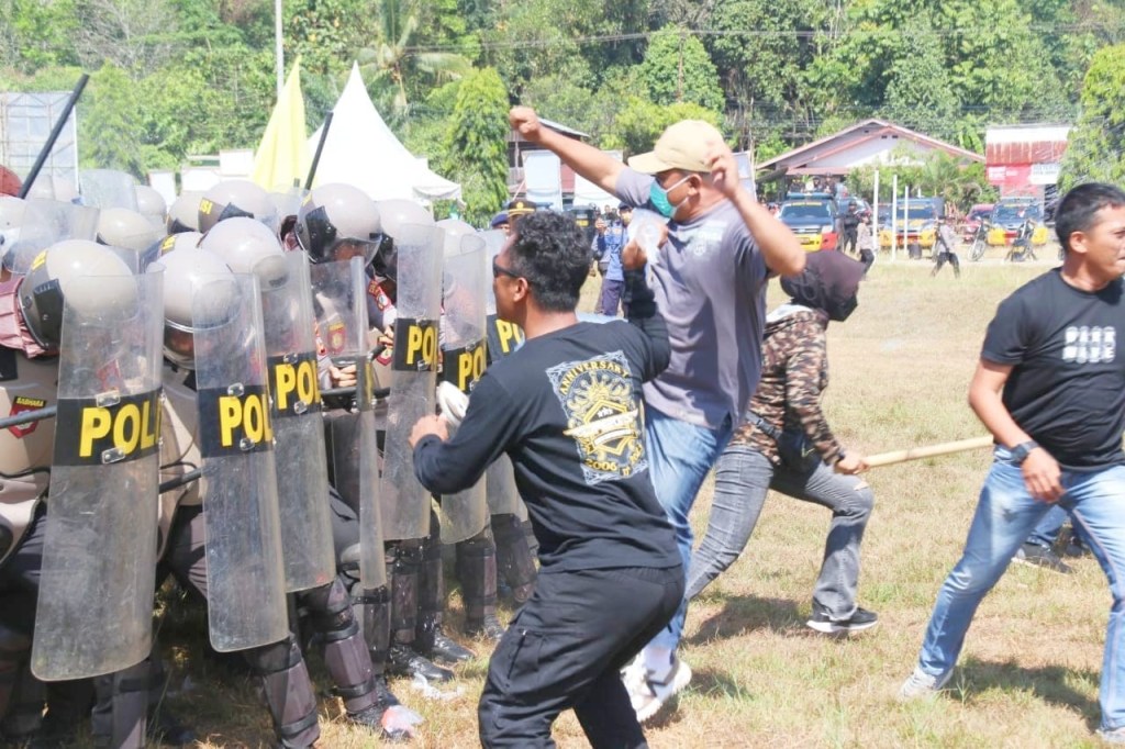 Kegiatan yang dihadiri oleh Bupati Morowali Utara Dr. dr. Delis Julkarson Hehi. MARS, Kapolres Morowali Utara AKBP Imam wijayanto S.I.K. M.H, Perwakilan DPRD, Danki Brimob, Ketua Bawaslu, Komisioner KPU, Danramil Lembo, Camat Lembo serta Tamu undangan lainnya tersebut menampilkan kesiapan personel gabungan dalam mengamankan tahapan pemilu yang disimulasikan semulanya berlangsung lancar tiba-tiba berubah menjadi anarkis namun pada akhirnya dapat dikendalikan sehingga situasi kembali kondusif.