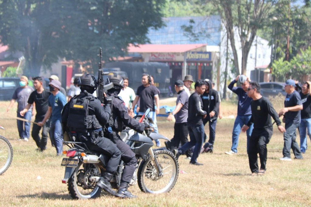 Simulasi ini meliputi berbagai tahapan, dimulai dari kondisi tenang hingga situasi yang memuncak pada tindakan anarkis dan penjarahan.”tambahnya.