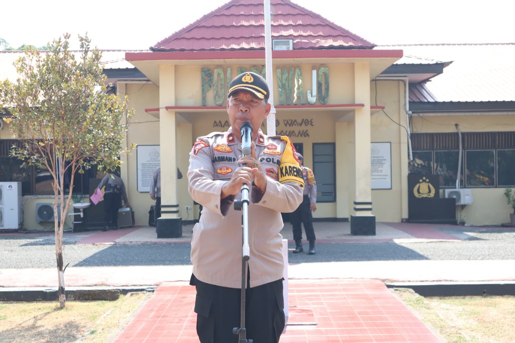 Dalam rangka Pengamanan Pemilihan Kepala Desa Serentak Tahun 2023, Polres Wajo melaksanakan Apel Pergeseran Pasukan yang digelar di Lapangan Mapolres Wajo, Minggu (22/Oktober/2023) Pukul 08.00 Wita.