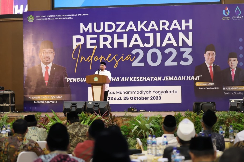 News Lintas Sulawesi/Kemenag Sulsel : Menteri Agama Yaqut Cholil Qoumas membuka Mudzakarah Perhajian Indonesia 2023, di Yogyakarta. Menag meminta forum diskusi yang melibatkan praktisi perhajian, alim ulama, ahli kesehatan, serta pembimbing manasik haji ini dapat merumuskan secara tuntas terkait dengan syarat istitha’ah kesehatan haji.