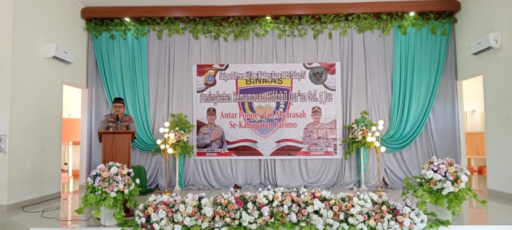 Bertempat di Aula Dinas Pendidikan dan Kebudayaan Kabupaten Parimo, Kaops Madago Raya Kombes Pol. Denny Jatmiko,S.I.K yang diwakili oleh Pamen Satgas II Preemtif Kompol Mat Syukri,S.Sos menghadiri sekaligus membuka Kegiatan penyelenggaraan peningkatan kemampuan Hifdzhil Qur’an Gol. 5 Juz