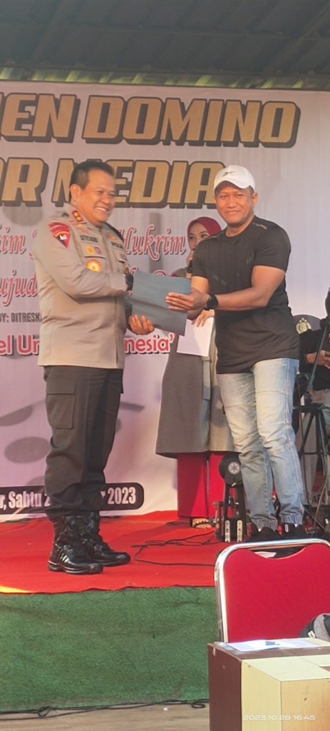 “Kita ketahui bersama bahwa Domino merupakan olahraga yang digemari oleh semua kalangan bahkan Domino sudah masuk cabang olahraga yang dipertandingkan,” ucap Kapolda.