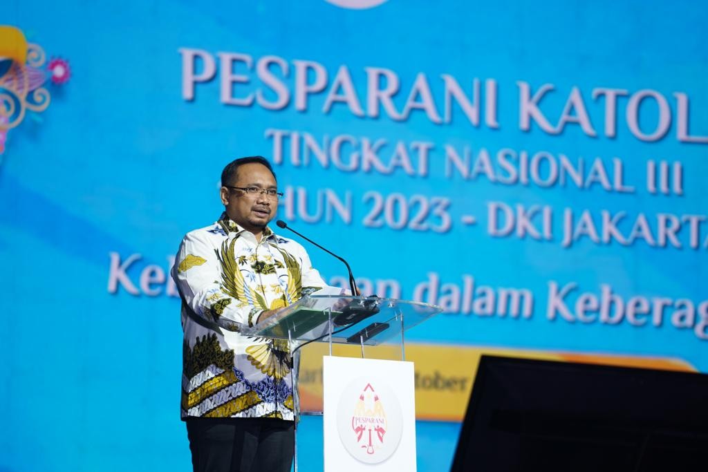 Menteri Agama Yaqut Cholil Qoumas secara resmi membuka Pesta Paduan Suara Gerejani (Pesparani) Katolik tingkat Nasional III di Ancol, Jakarta. Di hadapan ribuan umat Katolik dari berbagai daerah di Indonesia, Menag menyampaikan apresiasi atas doktrin 100% Katolik 100% Indonesia.