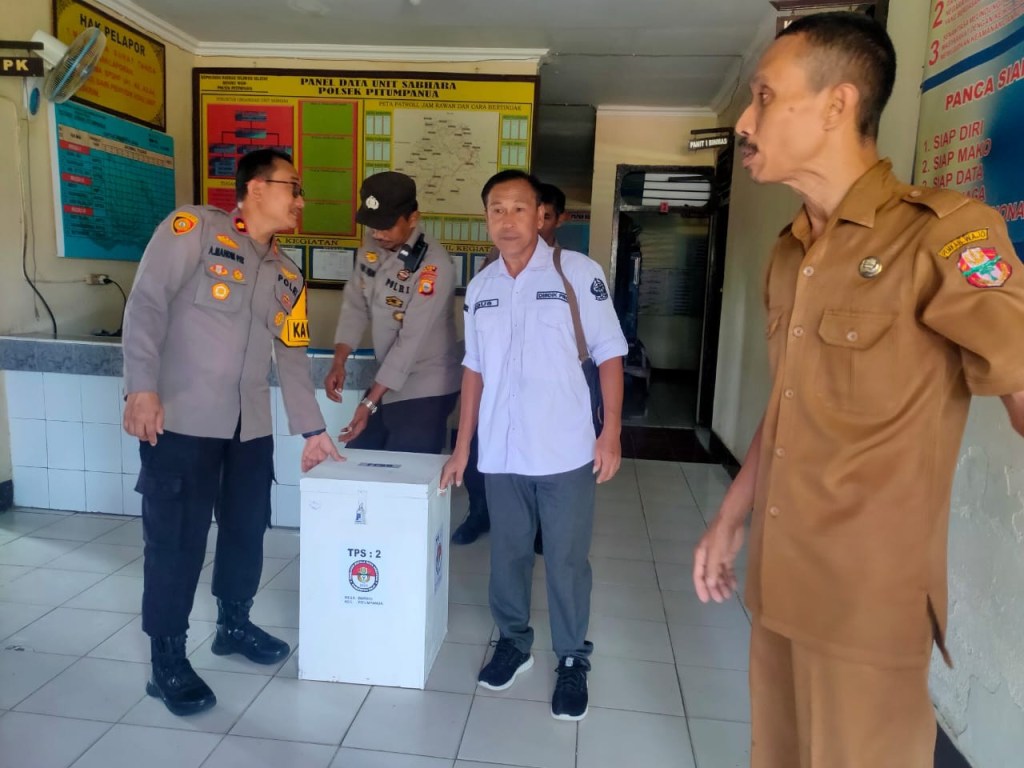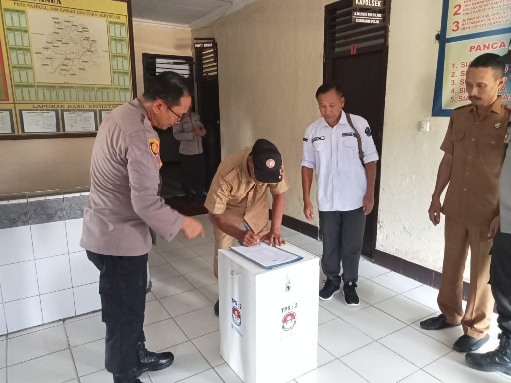 News Lintas Sulawesi/WAJO : Kapolsek Pitumpanua Polres Wajo Kompol Andi Mahdin PAT,SH.,MM pimpin penyerahan kotak suara Persiapan Pemilihan Kepala Desa Buriko ke PPKD Buriko ysngg disaksikan oleh pihak Kecamatan Pitumpanua.