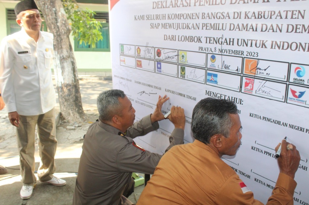 Ia juga menambahkan dalam kegiatan tersebut dilakukan pembacaan Deklarasi Pemilu Damai oleh ketua komisioner Bawaslu kabupaten lombok tengah dan diikuti oleh seluruh ketua partai poliltik, tokoh masyarakat tokoh adat dan tokoh pemuda sekaligus penandatanganan Deklarasi Pemilu Damai oleh perwakilan masing-masing pejabat dan ketua partai politik.