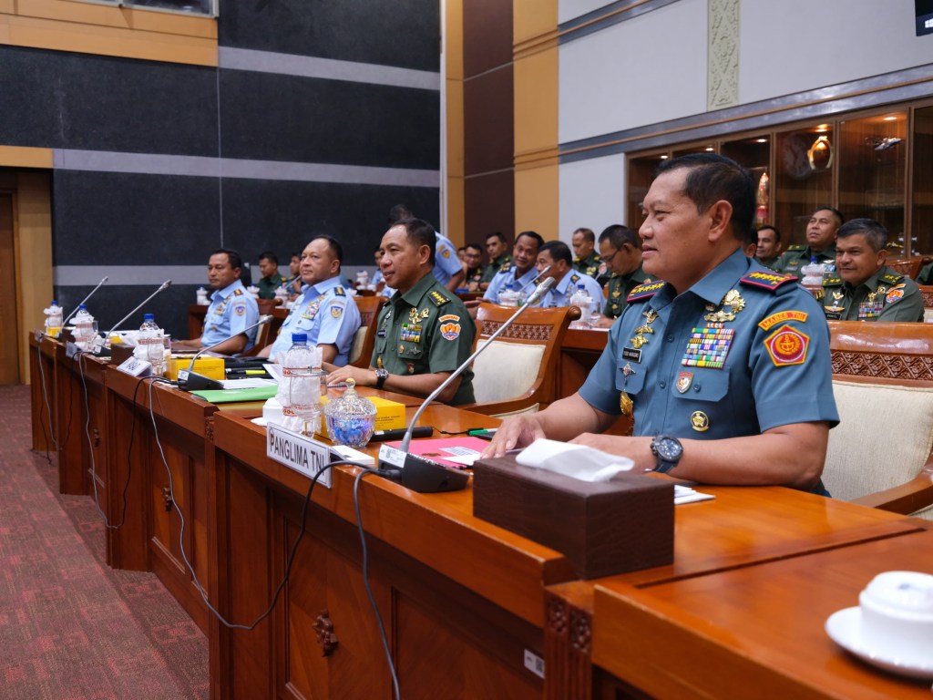 News Lintas Sulawesi/Jakarta, 7 November 2023 Nomor : SP-485/XI/2023/Pen (Puspen TNI) : Panglima TNI Laksamana TNI Yudo Margono S.E., M.M bersama Kasad Jenderal TNI Agus Subiyanto S.E., M.Si., Kasal Laksamana TNI Muhammad Ali, dan Kasau Marsekal TNI Fadjar Prasetyo, S.E., M.P.P., melaksanakan rapat kerja dengan Komisi I DPR RI, bertempat di Gedung Nusantara DPR RI Jakarta, Selasa (7/11/2023).