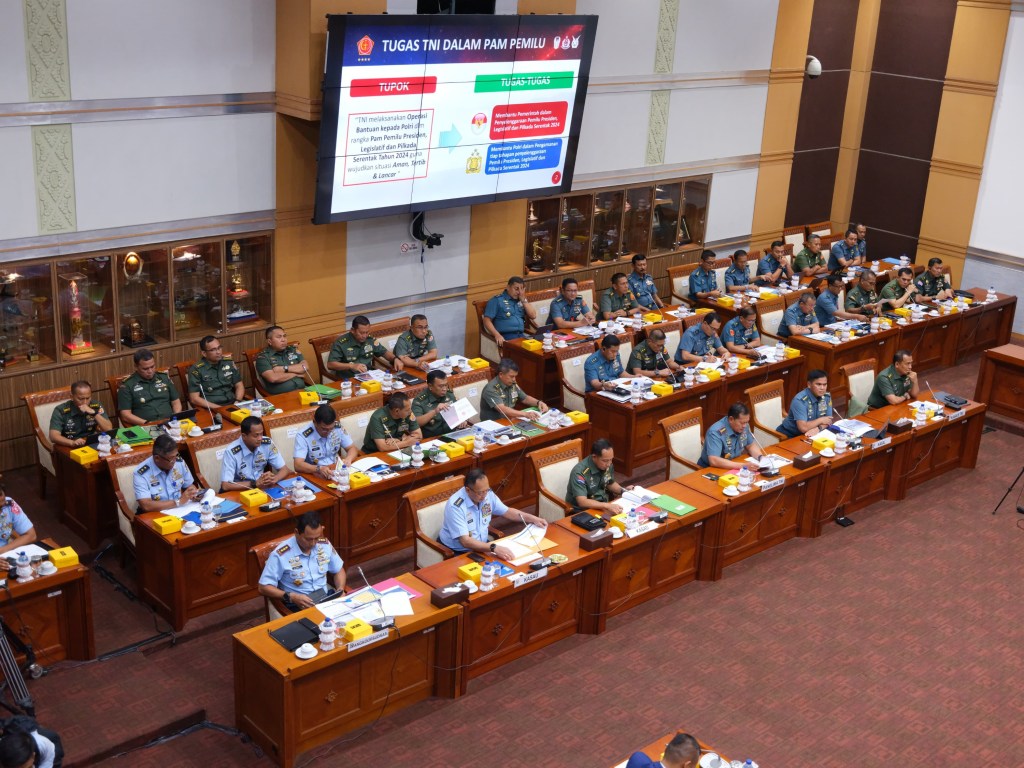 Kepada Komisi I DPR RI, Panglima TNI melaporkan bahwa dalam pengamanan Pemilu, tugas pokok TNI adalah melaksanakan operasi perbantuan kepada Kepolisian Negara Republik Indonesia, dalam rangka pengamanan Pemilu Presiden, Legislatif dan Kepala Daerah serentak tahun 2024, sesuai dengan undang-undang TNI dalam rangka operasi militer selain perang guna mewujudkan situasi nasional yang aman tertib dan lancar.