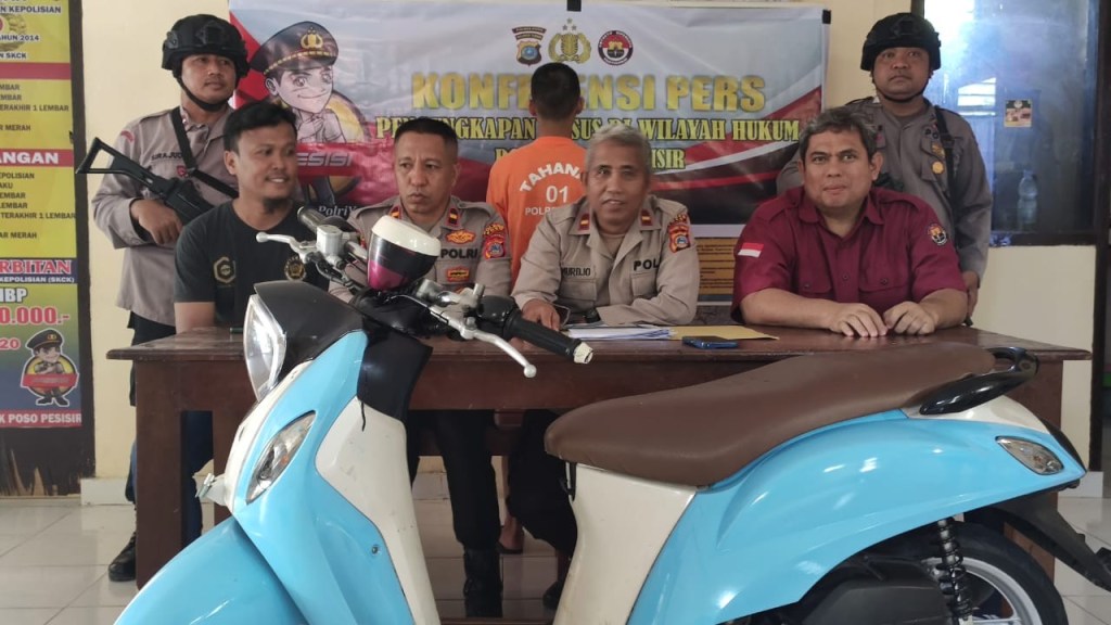 Pelaku Curanmor berinisial AL berhasil diamankan bersama barang bukti berupa satu unit motor Yamaha Fino bernopol DN 2035 ER. Oleh Polsek Poso Pesisir. Pencurian tersebut terjadi di Desa Mapane pada tanggal 23 Oktober 2023 lalu. Modus operandi pelaku adalah dengan berpura-pura bertamu ke rumah korban, walaupun korban dan pelaku sebenarnya tidak saling mengenal.