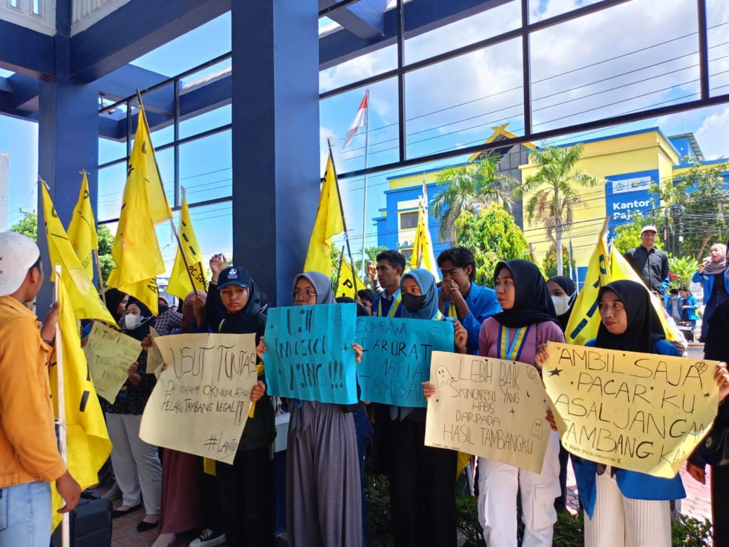 Massa aksi juga meminta pihak terkait untuk menelusuri keberadaan Warga Negara Asing (WNA) tanpa dokumen resmi yang bekerja di sana.