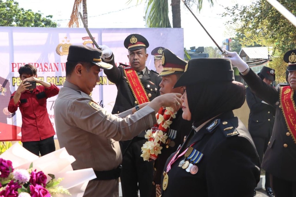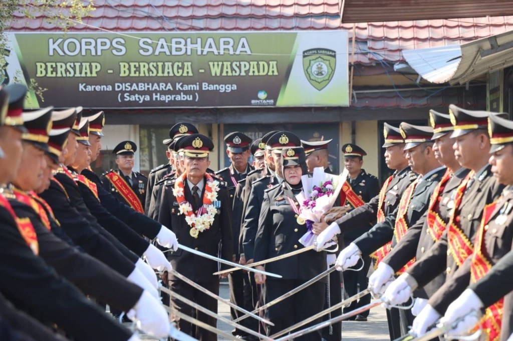 News Lintas Sulawesi/HUMDER : Kapolres Pelabuhan Makassar AKBP Yudi Frianto melepas anggotanya yang telah Purnabakti dengan upacara tradisi pedang pora pelepasan Purnabakti, Jum’at (17/11/2023)