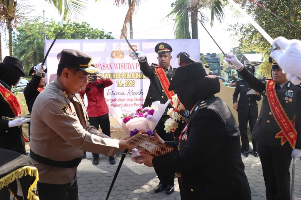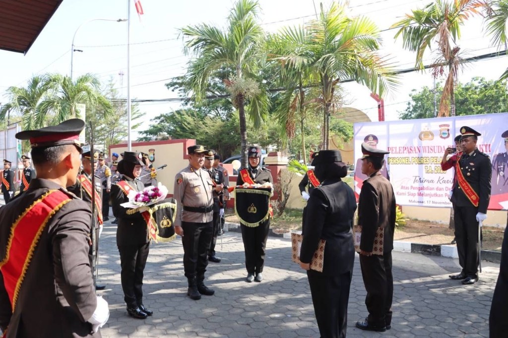 “Polres Pelabuhan Makassar yang memberikan penghormatan kepada personil wisuda purna bhakti dengan dilakukannya upacara pelepasan dengan tradisi pedang pora”sebut IPTU Hasrul.