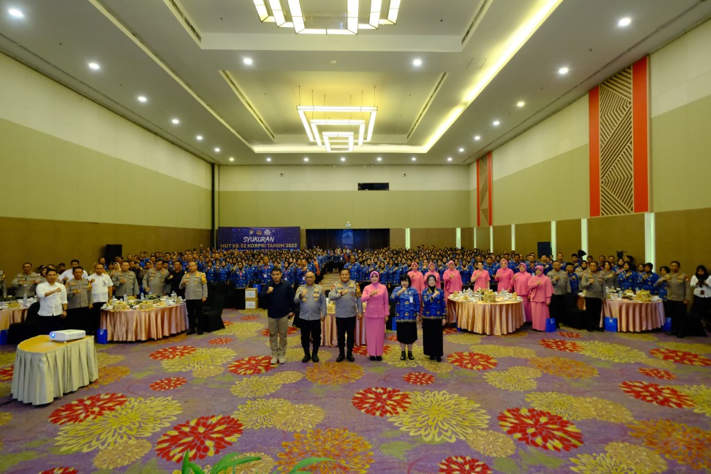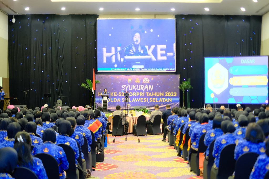 News Lintas Sulawesi/Polda Sulsel : ASN Polda Sulsel menggelar syukuran dalam rangka Hut KORPRI ke 52 di Sandeq Ballroom Hotel Claro Makassar, Rabu (29/11/2023).