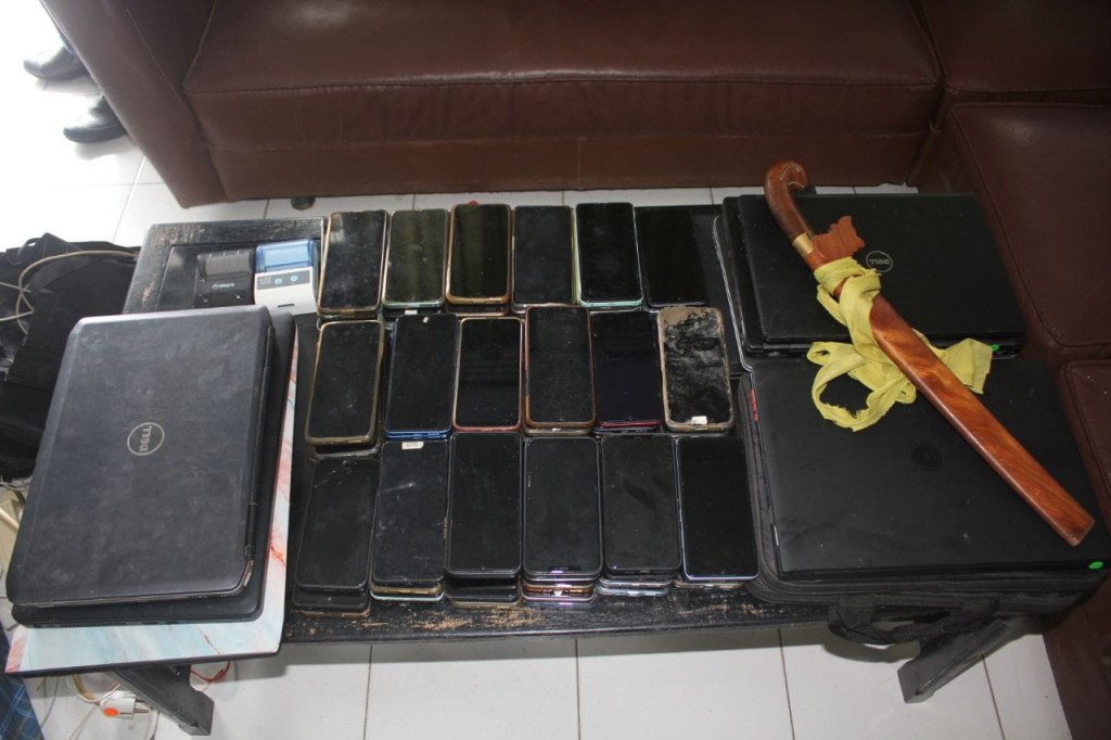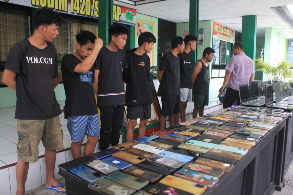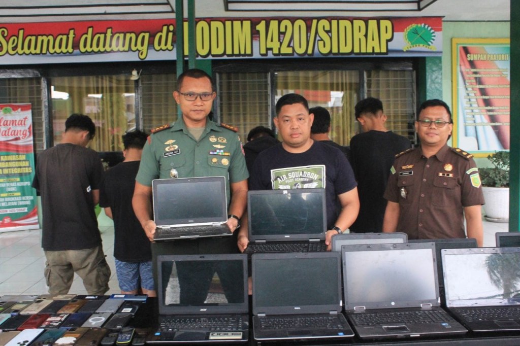 Sebagai gambaran, APH TNI Polri di Sidrap berhasil mengamankan sejumlah barang bukti, antara lain 96 unit handphone, 13 unit laptop, sebilah parang panjang, 2 unit printer mini, satu printer besar dan kabel serta sejumlah charger.