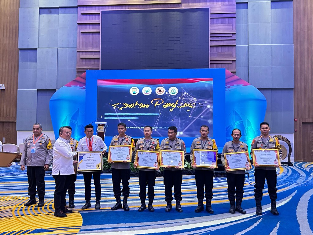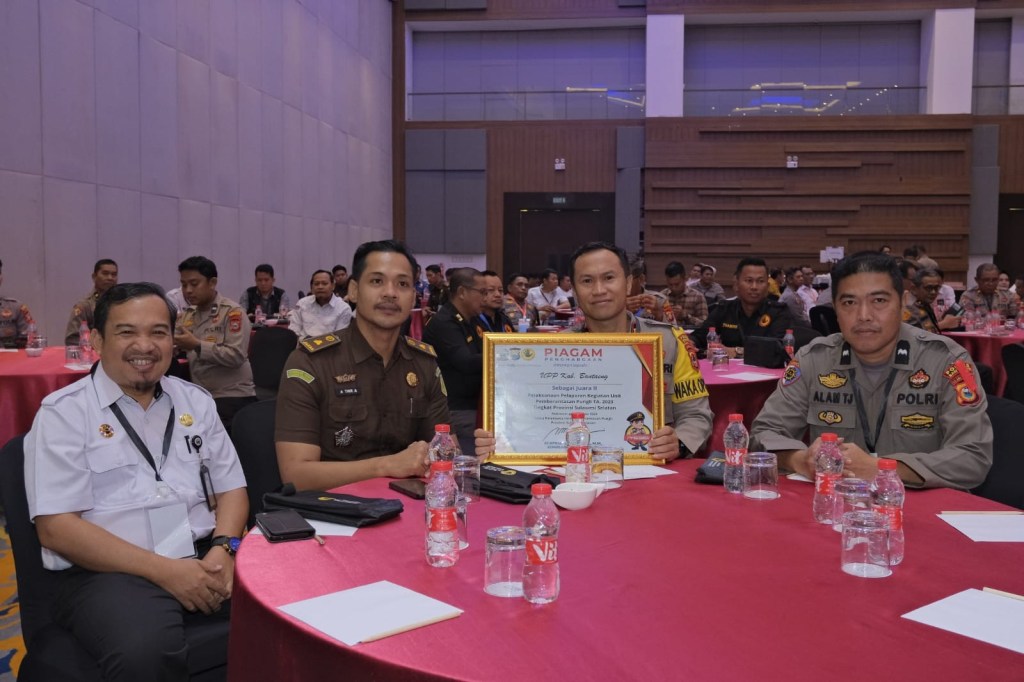 Wakapolres Bantaeng, Kompol Aswar Anas,S.Sos yang sekaligus sebagai Ketua Unit UPP Kabupaten Bantaeng menghadiri dan menerima langsung penghargaan yang digelar di Hotel Ballroom Four Point By Sheraton Makassar, Rabu (29/11/2023).