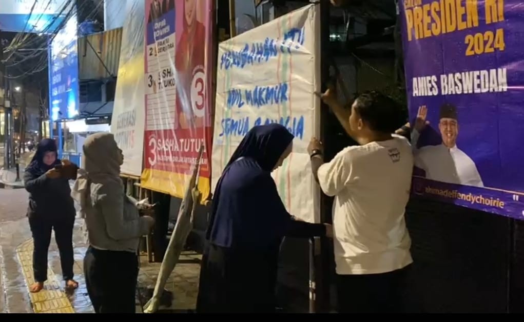 Dengan hanya bermodalkan satu spanduk AMIN saja, mereka berkeliling dari desa ke desa pada tiap kabupaten yang ada di sana.