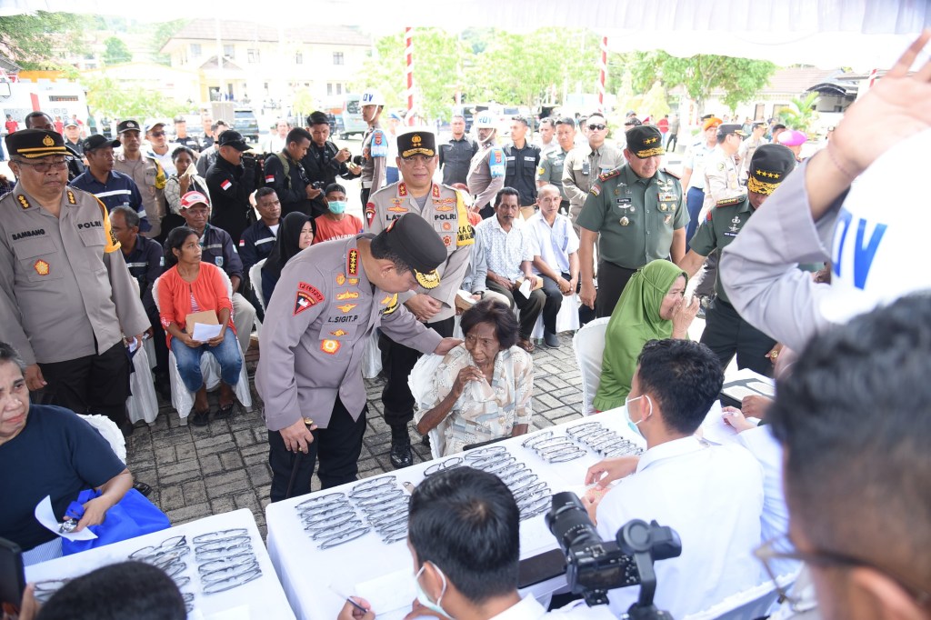 News Lintas Sulawesi/Maluku : Kapolri Jenderal Polisi Drs. Listyo Sigit Prabowo dan Panglima TNI Jenderal Agus Subiyanto memberikan bantuan kesehatan serta bantuan sosial kepada masyarakat di Maluku. Bantuan tersebut diberikan dalam rangka mendekatkan diri dengan masyarakat dan mengajak terwujudnya Pemilu 2024 aman dan damai.