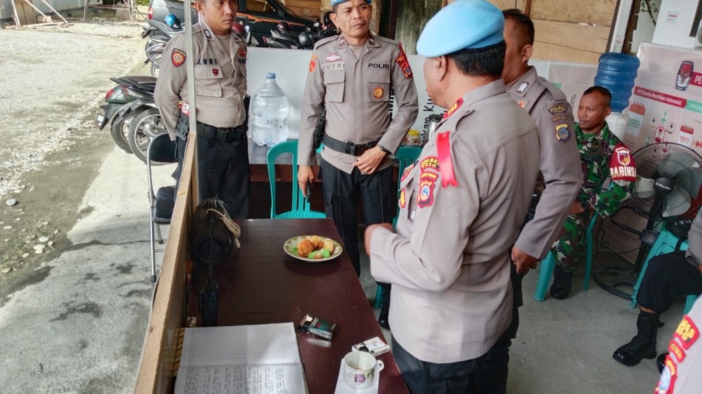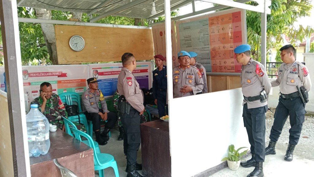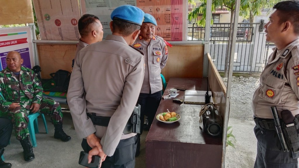 News Lintas Sulawesi/Poso : Kasubatgas Propam Operasi Mantap Brata Tinombala 2023, AKP Jufri Lawendatu, melakukan pengecekan terhadap personel yang tengah bertugas melakukan pengamanan di kantor penyelenggara Pemilu di Kabupaten Poso, Sulawesi Tengah, pada Kamis (14/12/2023).
