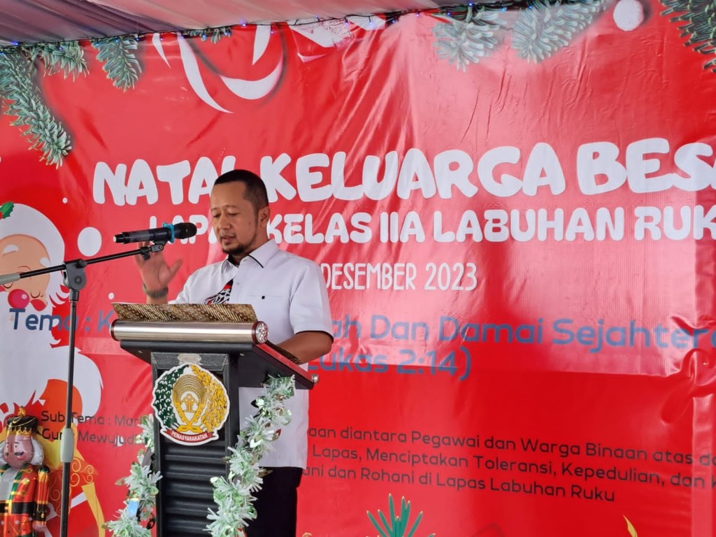 Pada kesempatan ini, Kepala Lapas Kelas IIA Labuhan Ruku menyampaikan terima kasih kepada Perwakilan dari Polres Asahan dan Pendeta yang telah hadir dalam perayaan Natal Lapas Kelas IIA Labuhan Ruku, sehingga hal itu menjadi warna tersendiri bagi Lapas Kelas IIA Labuhan Ruku.